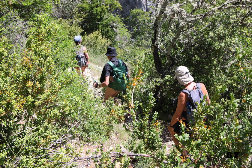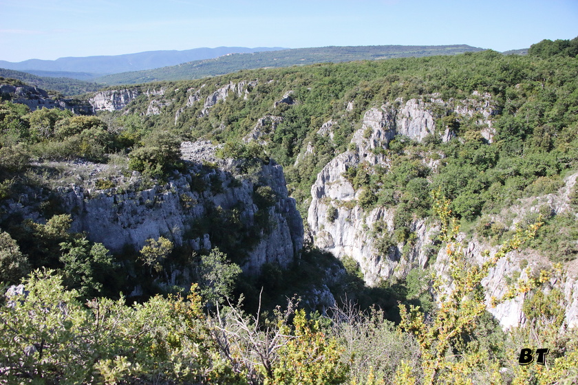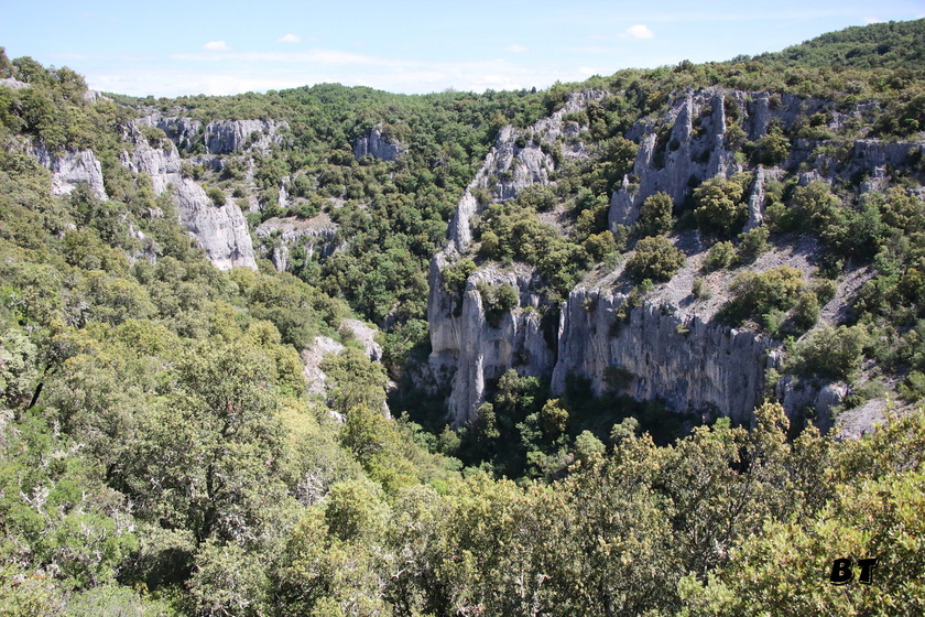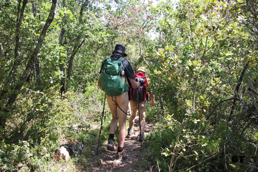 Le sentier poursuit sous les buis et les chênes ménageant peu de vues sur la gorge.