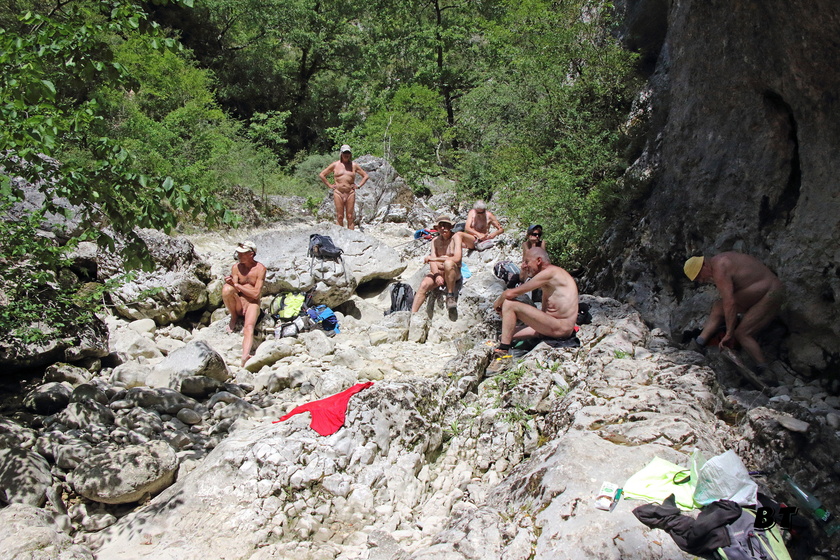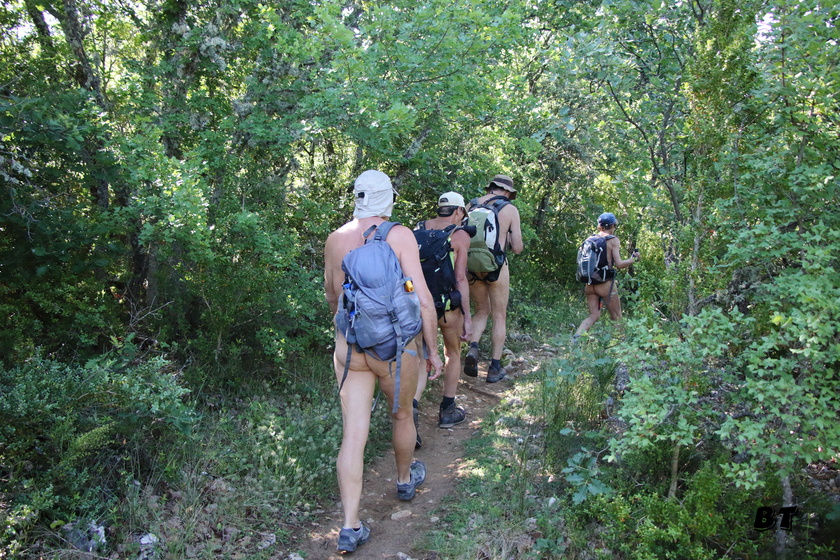 Au premier point de vue, un couple nous rattrape, pas de problème notre nudité ne les dérange pas. On chemine même un moment ensemble à travers la garrigue tout en discutant. D’autres personnes nous doublent sans que nous ressentions l’obligation de nous rhabiller.