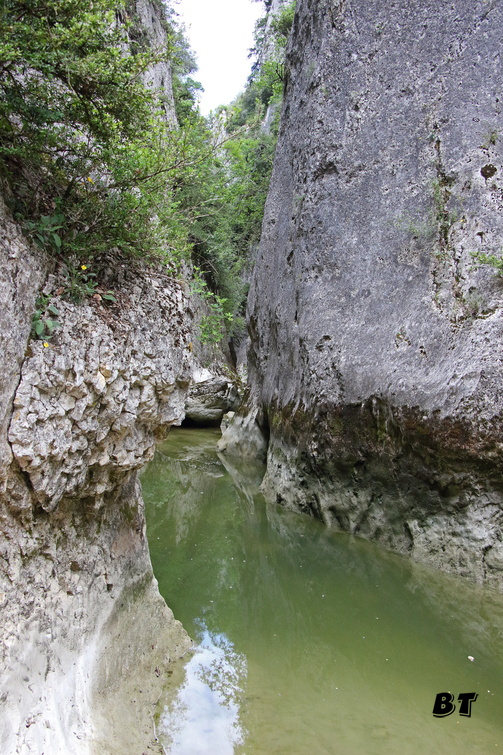 puis la gorge se rétrécit et nous venons buter sur un plan d’eau profond enserré entre deux parois verticales.