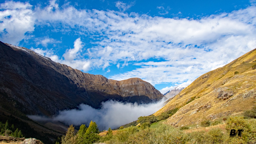 En effet, nous émergeons des nuages et au soleil après 10 minutes de marche. La vallée se découvre.