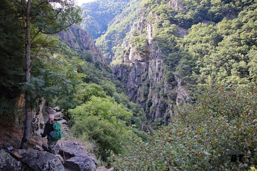 La montée devient raide, rocheuse, encombrée de blocs et l’on domine de plus en plus la gorge, bien plus haut que ceux d’en face.